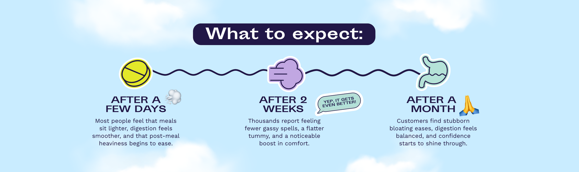 Take before a meal to prevent discomfort or after to ease it - or take daily for stubborn bloating, with 8 out of 10 customers approve within weeks✌️